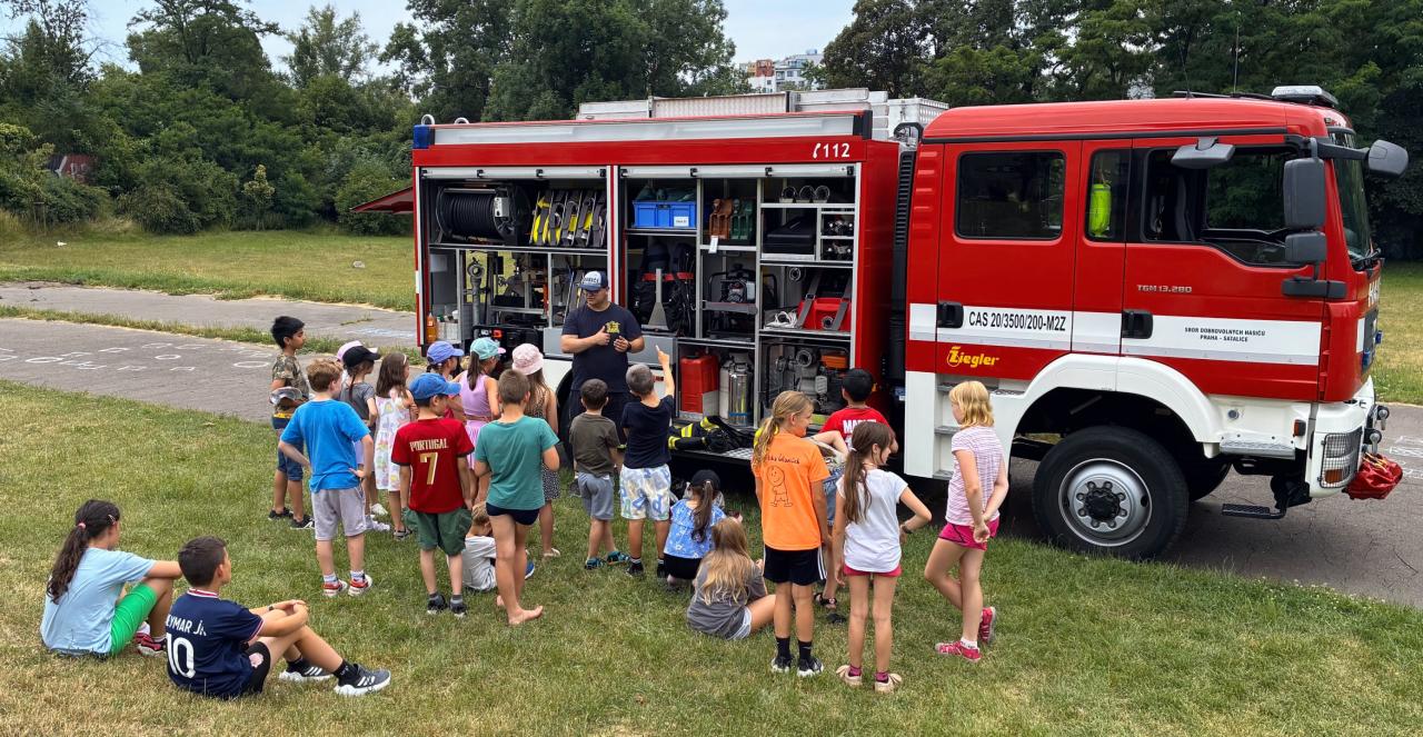 Naším největším zážitkem však byla návštěva dobrovolných hasičů ze Satalic, kteří nám ukázali svou techniku a připravili pěnovou klouzačku. To bylo radosti a smíchu!
